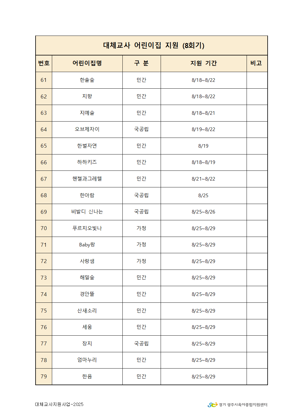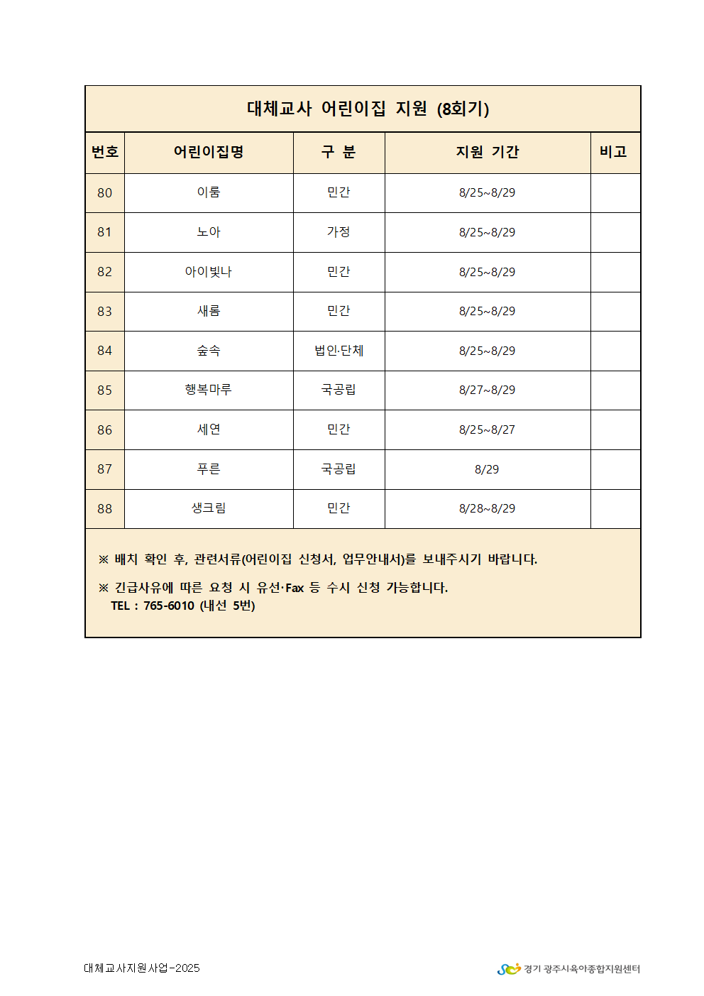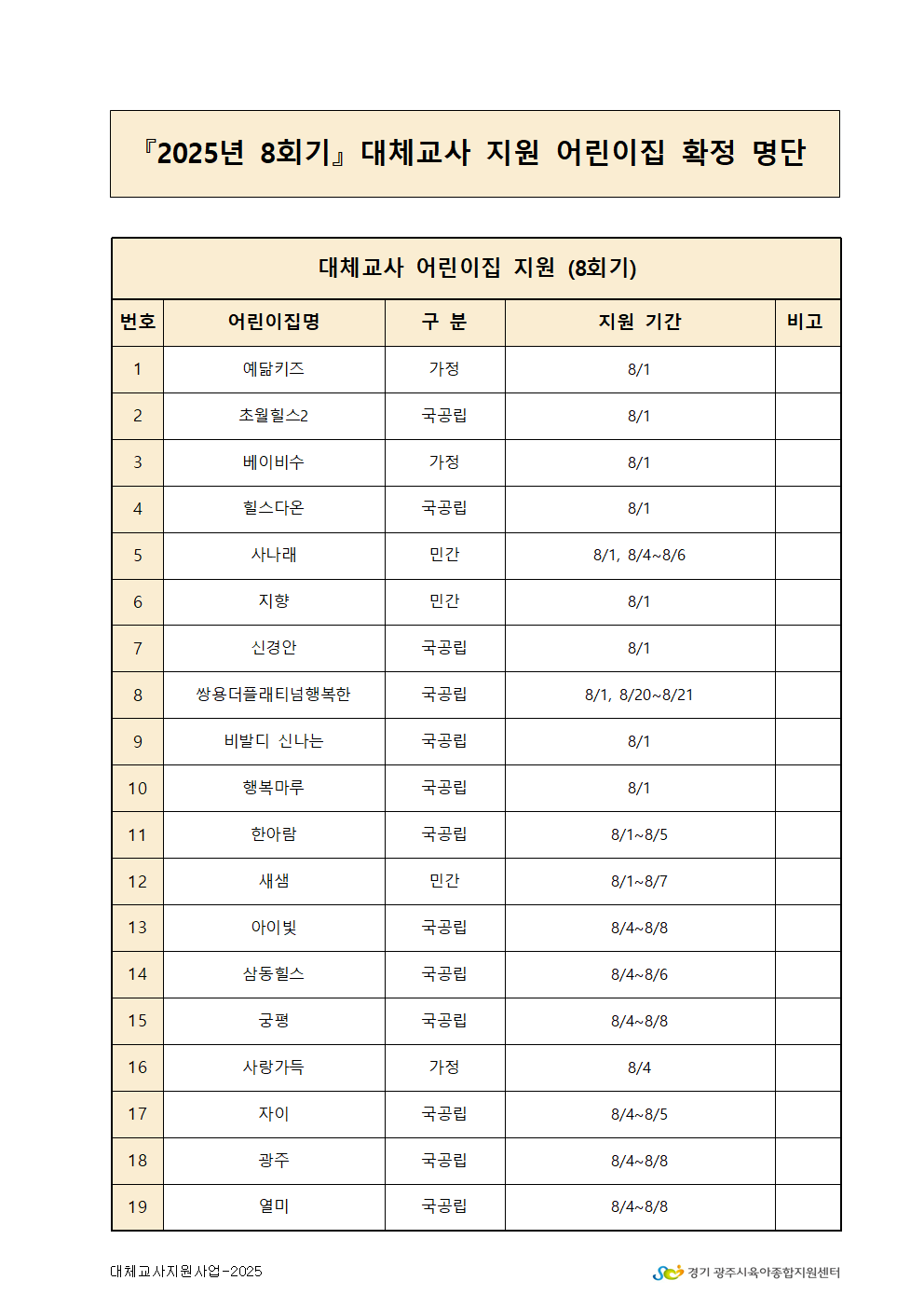 <경기광주시육아종합지원센터>직원채용공고 2025-5호(대체교사관리자)