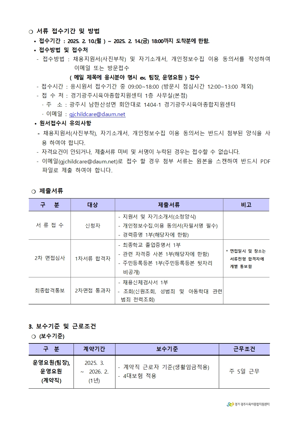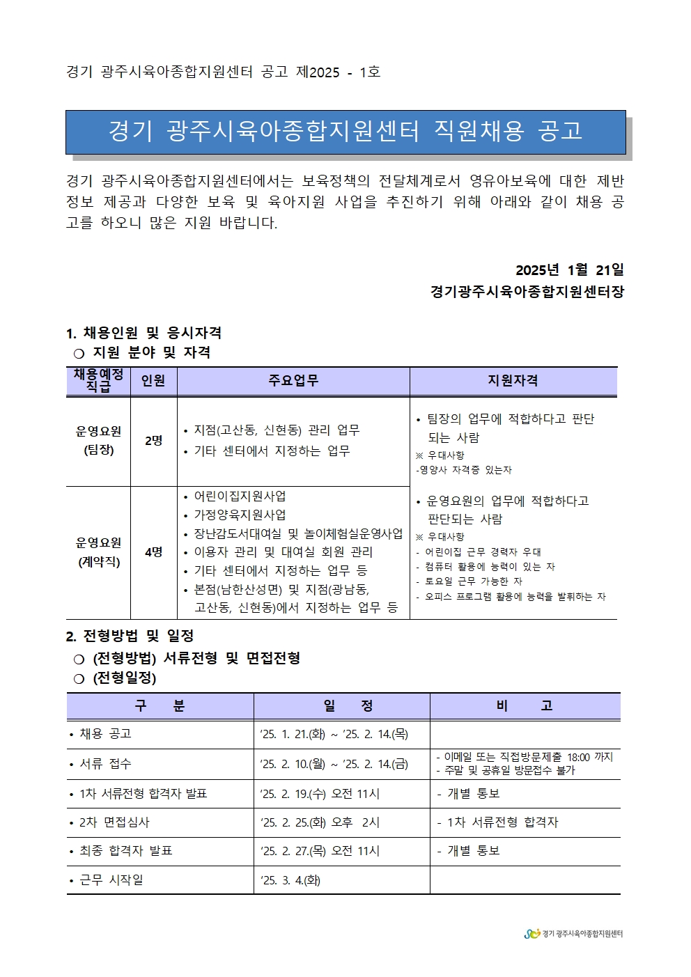 <경기광주시육아종합지원센터>직원채용공고2025-1호(팀장, 운영요원)