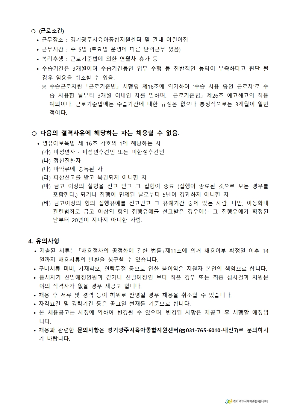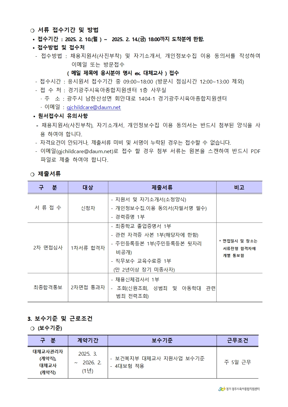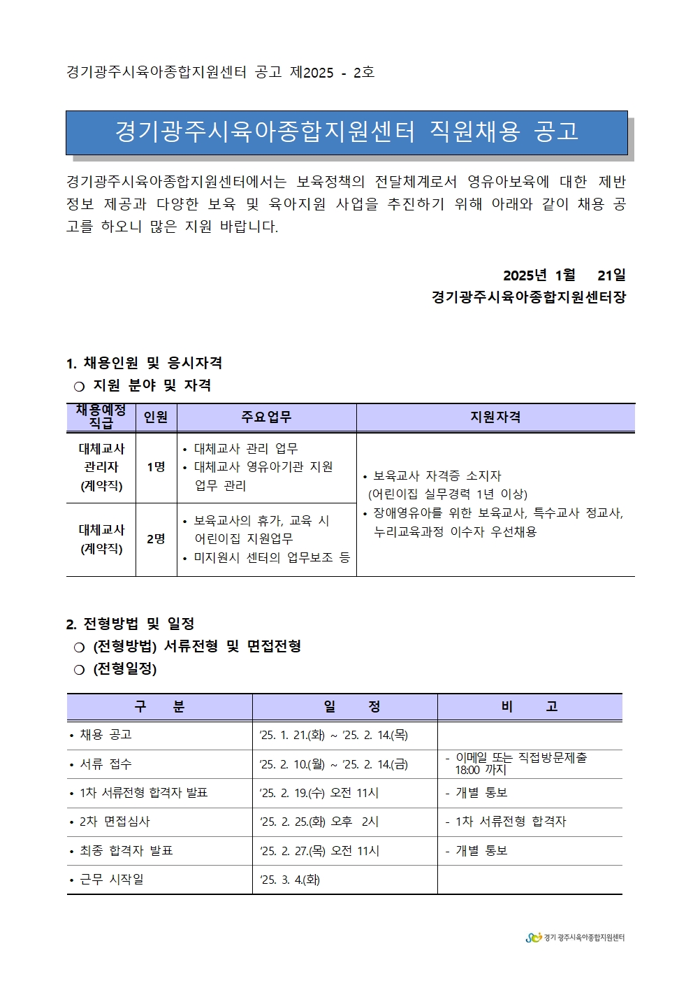 <경기광주시육아종합지원센터>직원채용공고2025-2호(대체교사 관리자, 대체교사)