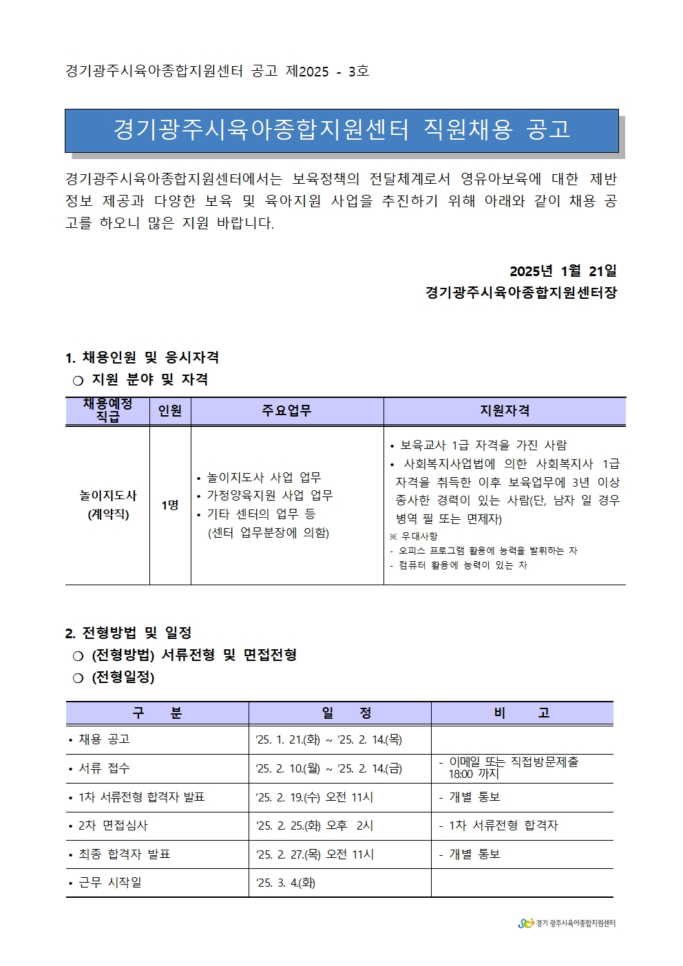 <경기광주시육아종합지원센터>직원채용공고2025-3호(놀이지도사)