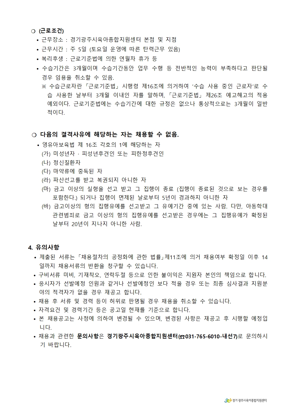 <경기광주시육아종합지원센터>직원채용공고2025-2호(대체교사 관리자, 대체교사)