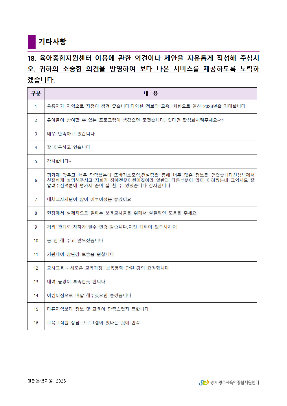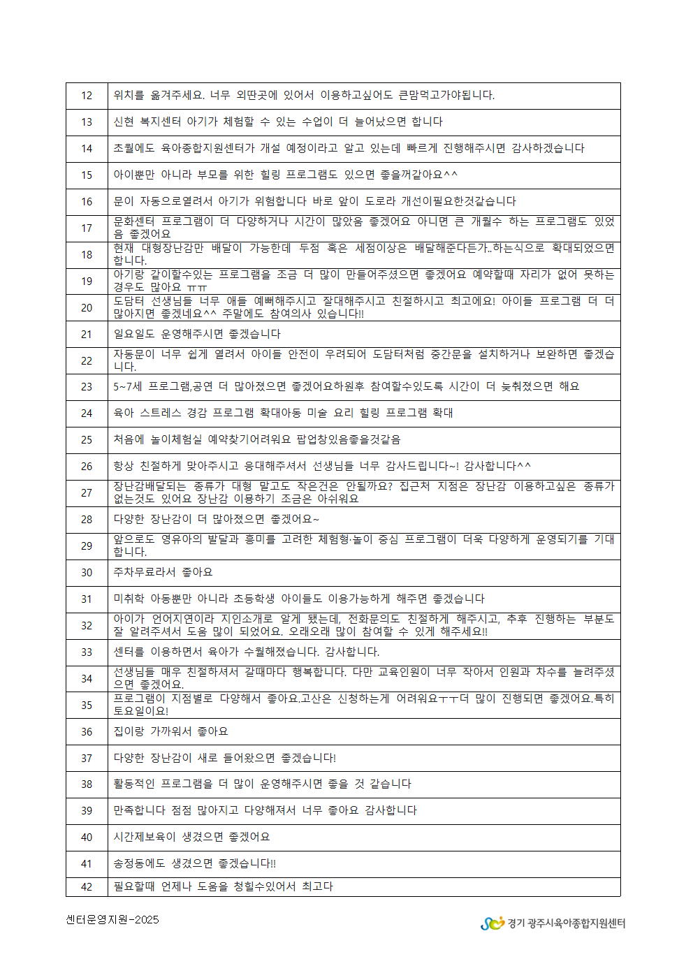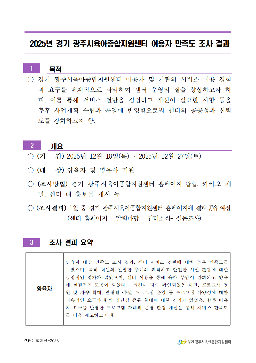 2025년 광주시육아종합지원센터 만족도 조사 결과 안내