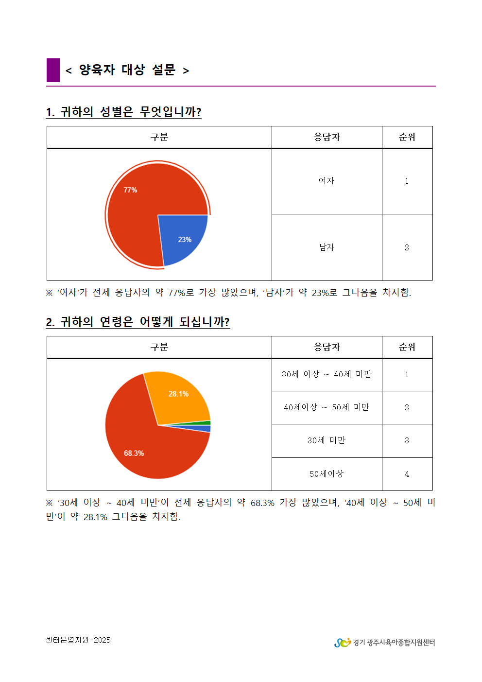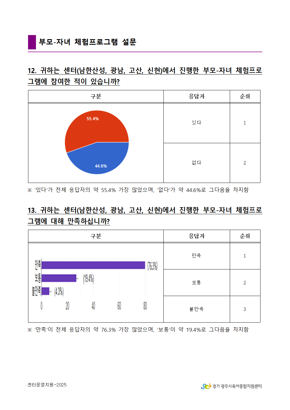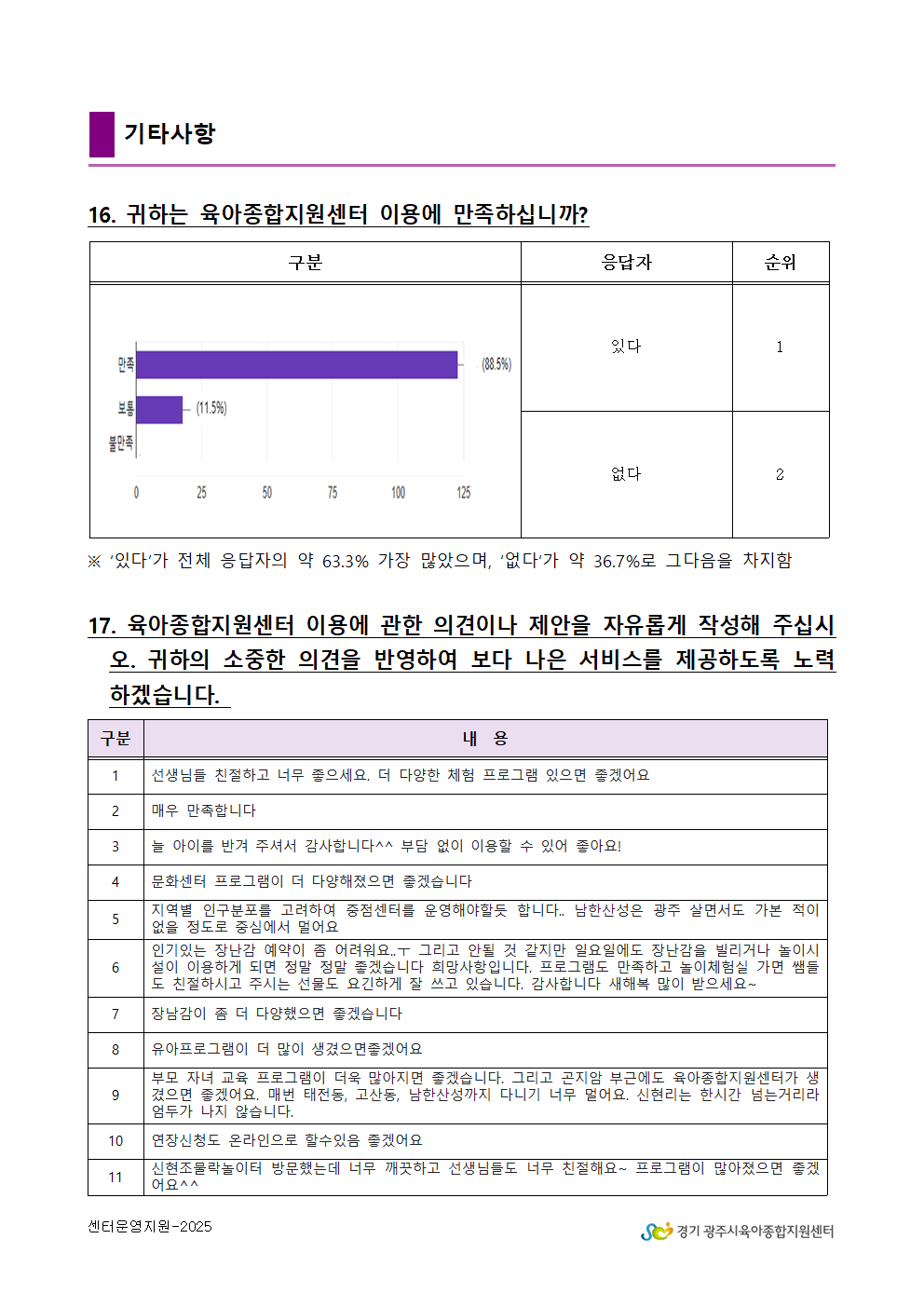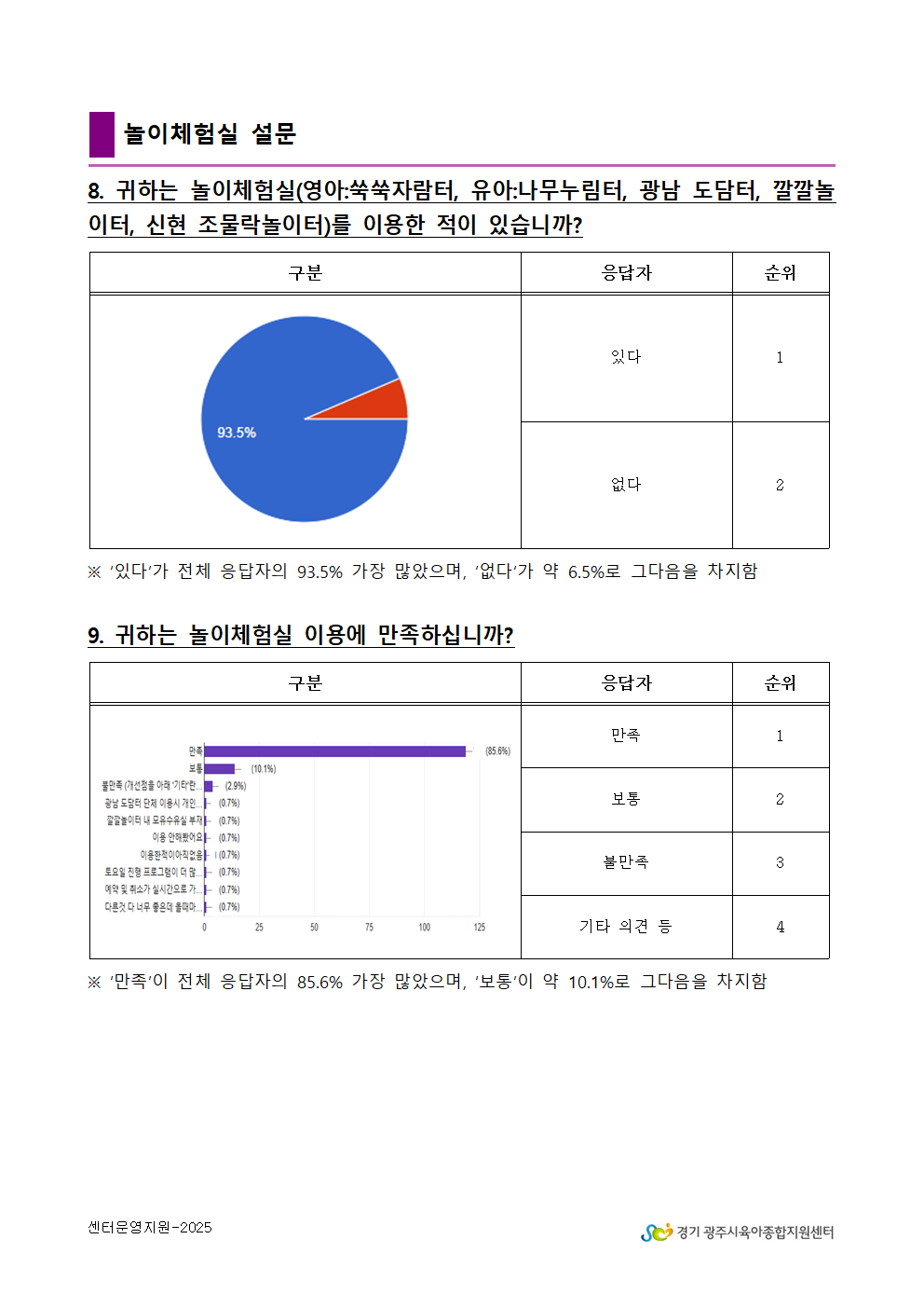 2025년 광주시육아종합지원센터 만족도 조사 결과 안내