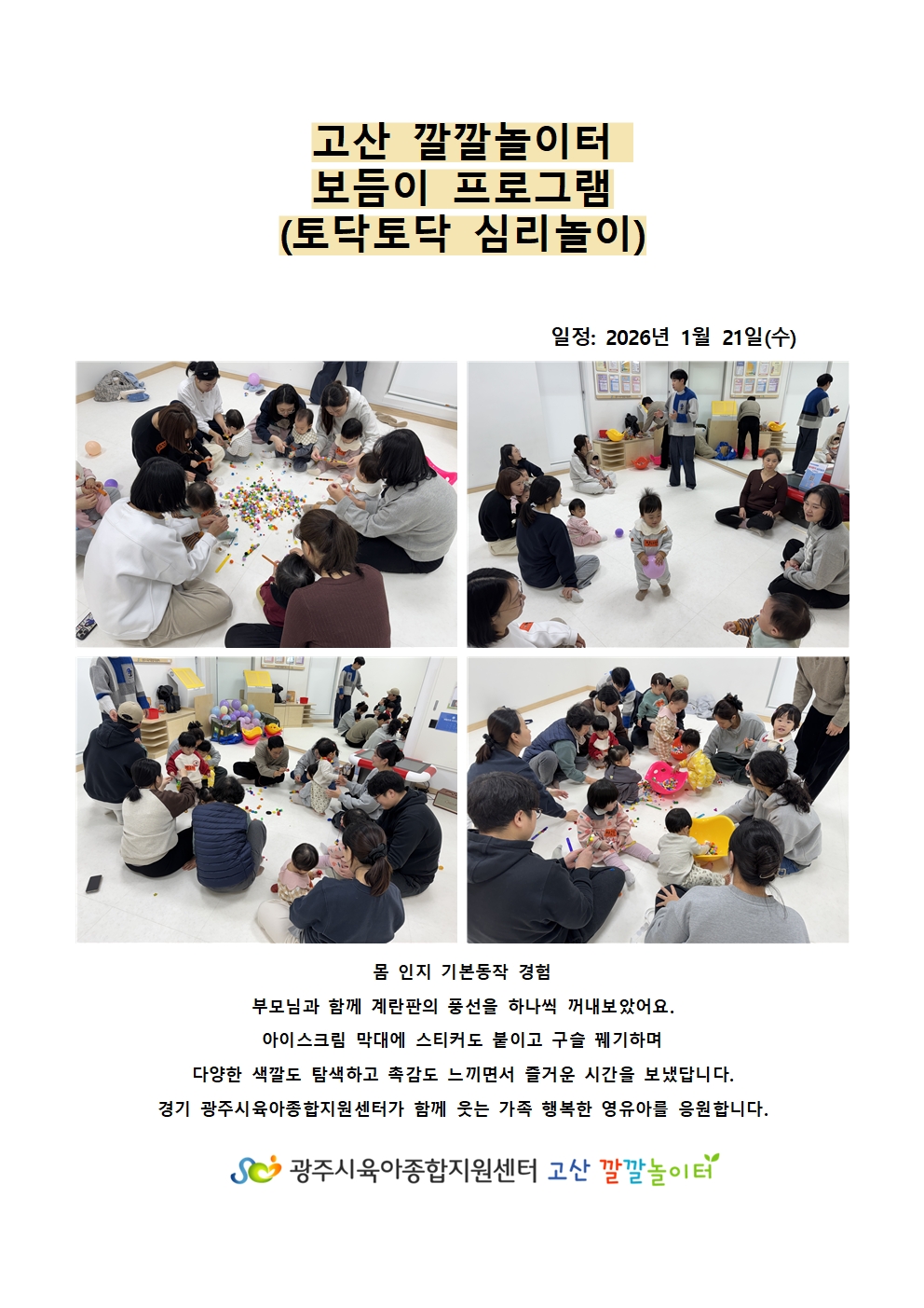 [고산] [고산깔깔놀이터] 보듬이프로그램 - 토닥토닥 심리놀이