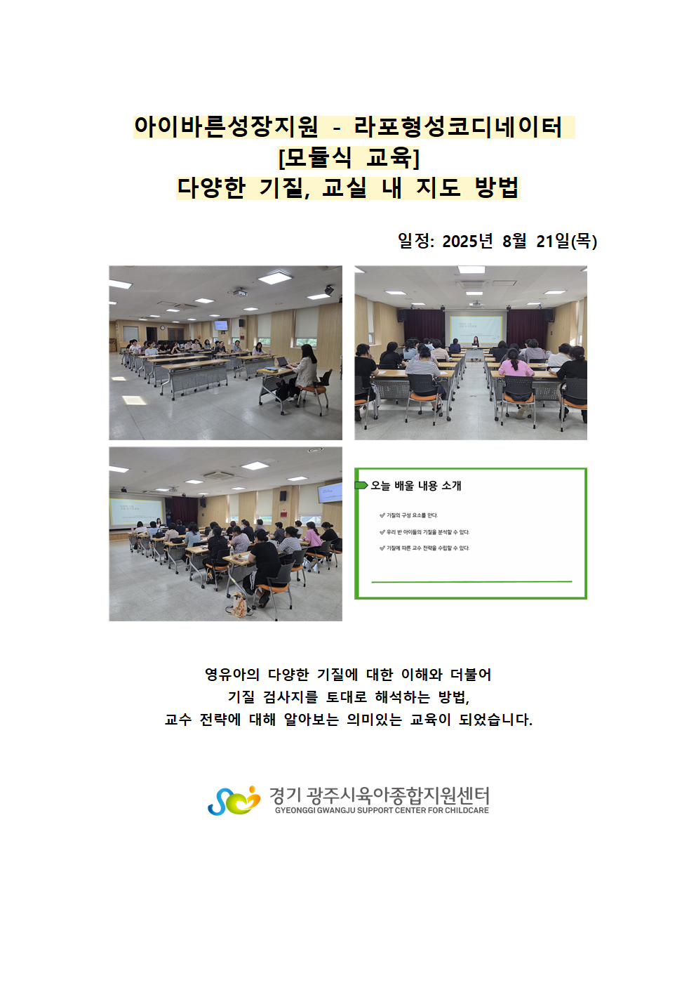 [남한산성] [남한산성 누림과 자람터] 아이바른성장지원 모듈식 교사 교육