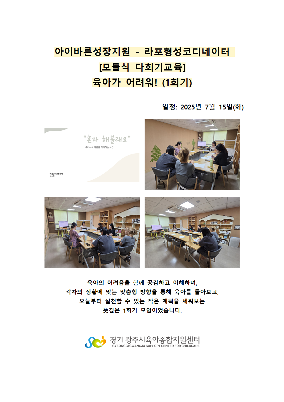 [남한산성 누림과 자람터] 아이바른성장지원 모듈식 교사 교육
