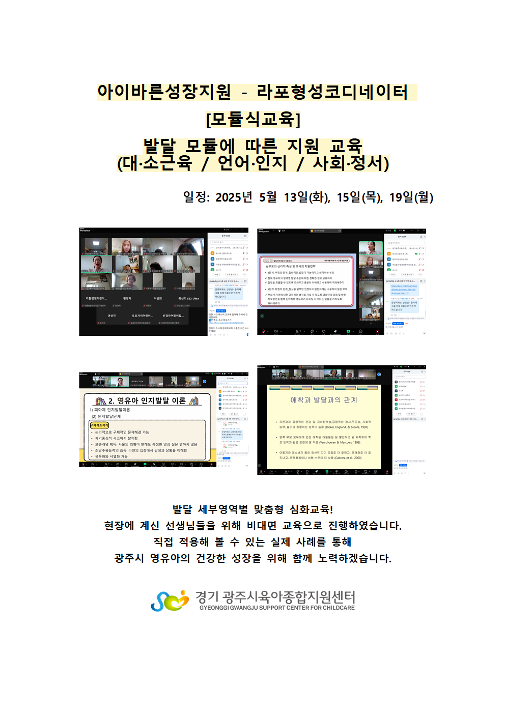 [남한산성] [남한산성 누림과 자람터] 아이바른성장지원 모듈식 교사 비대면 교육 [발달]