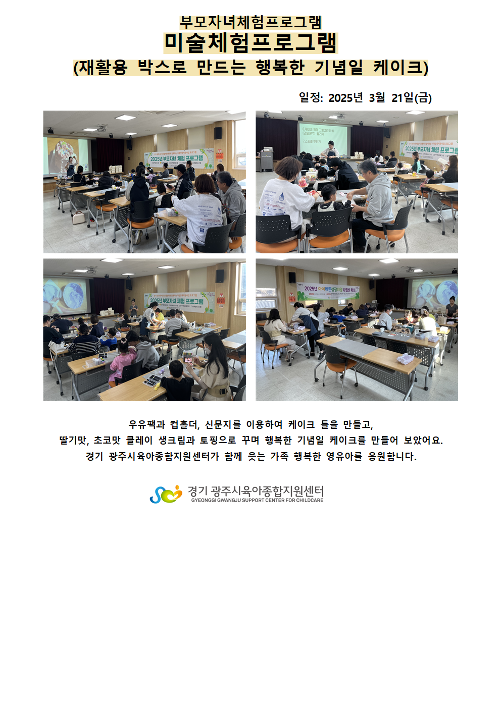 [남한산성] [남한산성 누림과 자람터] 미술체험프로그램-재활용 박스로 만드는 행복한 기념일 케이크