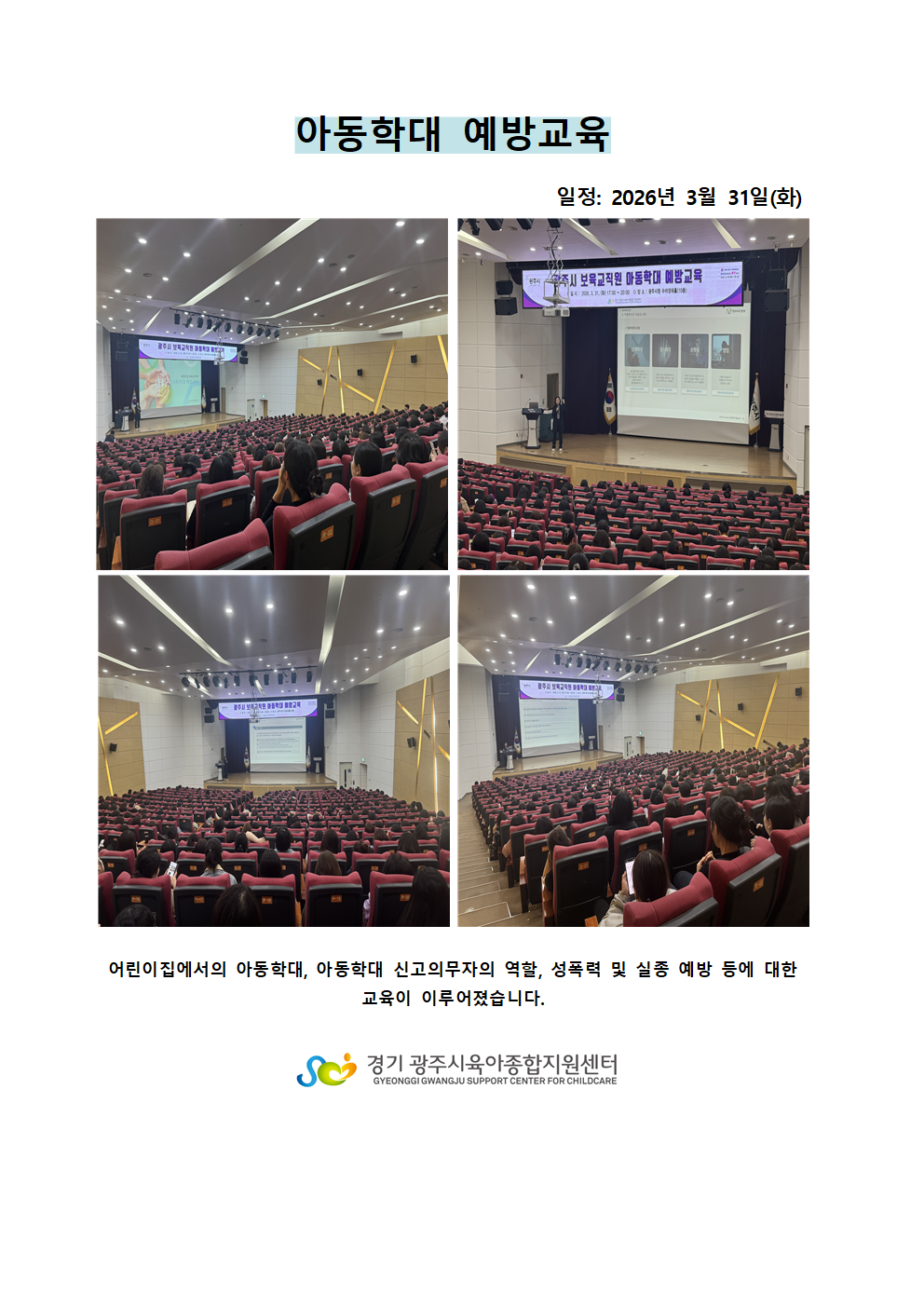 [남한산성] [영유아기관지원사업] 아동학대 예방교육