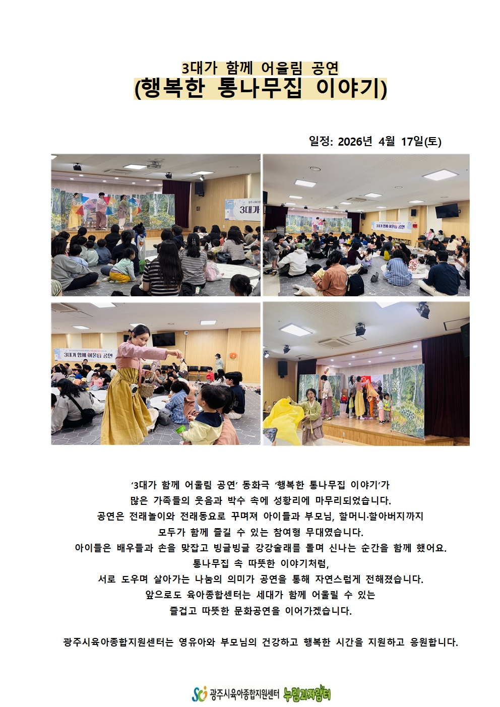 [남한산성] [남한산성 누림과자람터] 3대가 함께 어울림 공연-행복한 통나무집 이야기