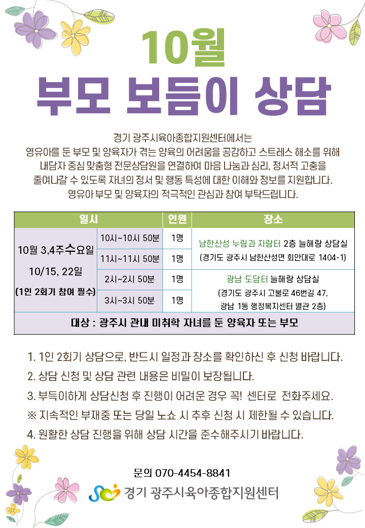 남한산성) 부모 보듬이 상담 11:00 [1인 기본 2회기]