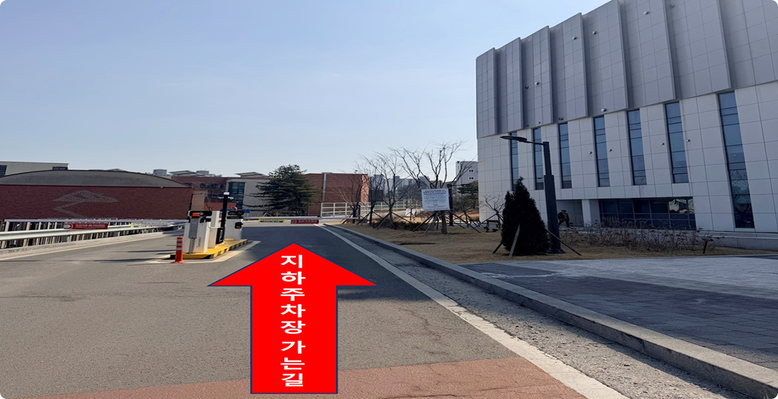 - 주 출입구에서 좀 더 직진 후 차단기 지나 오른편에 위치한 지하주차장 이용