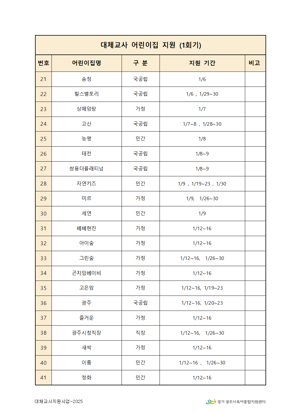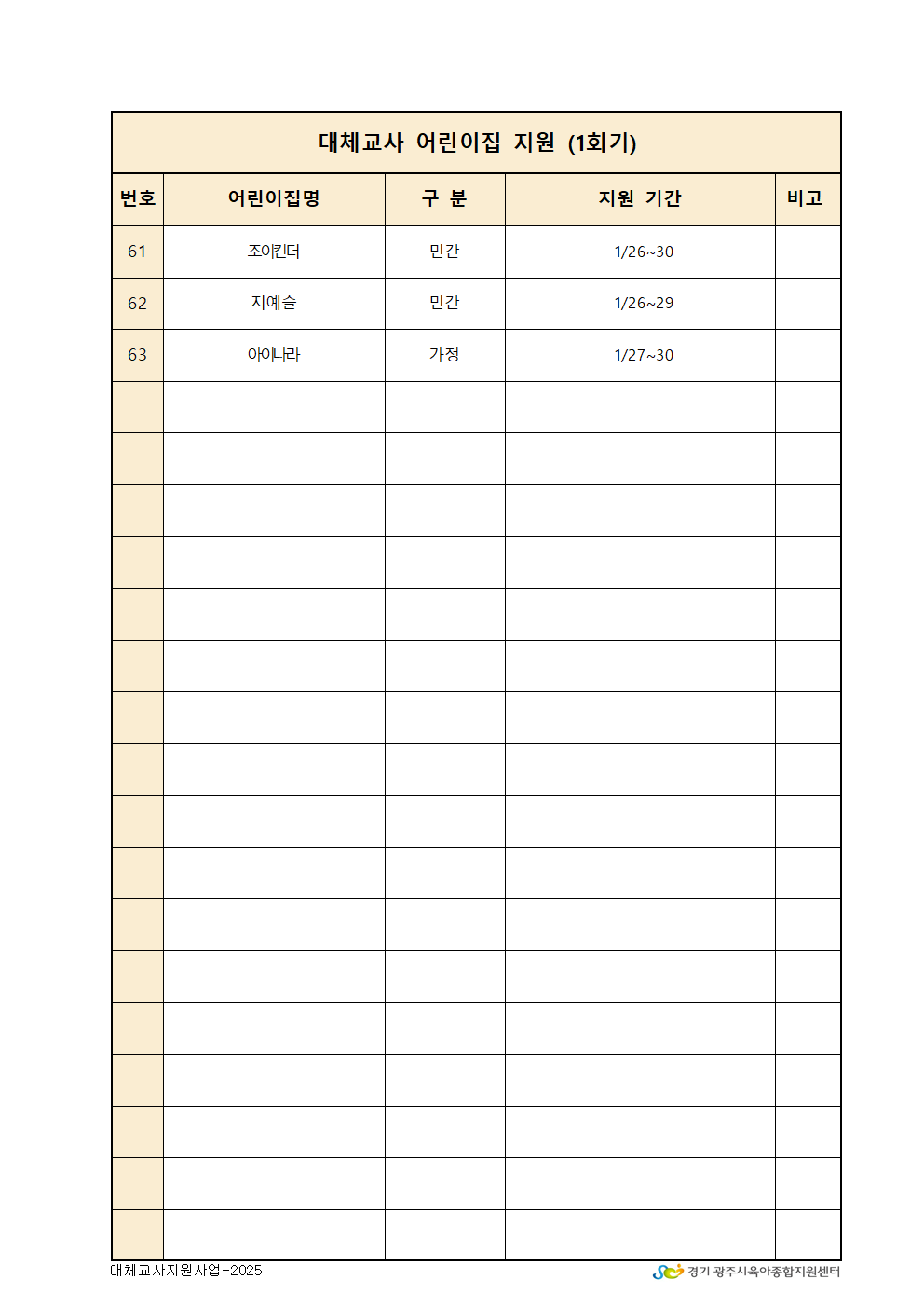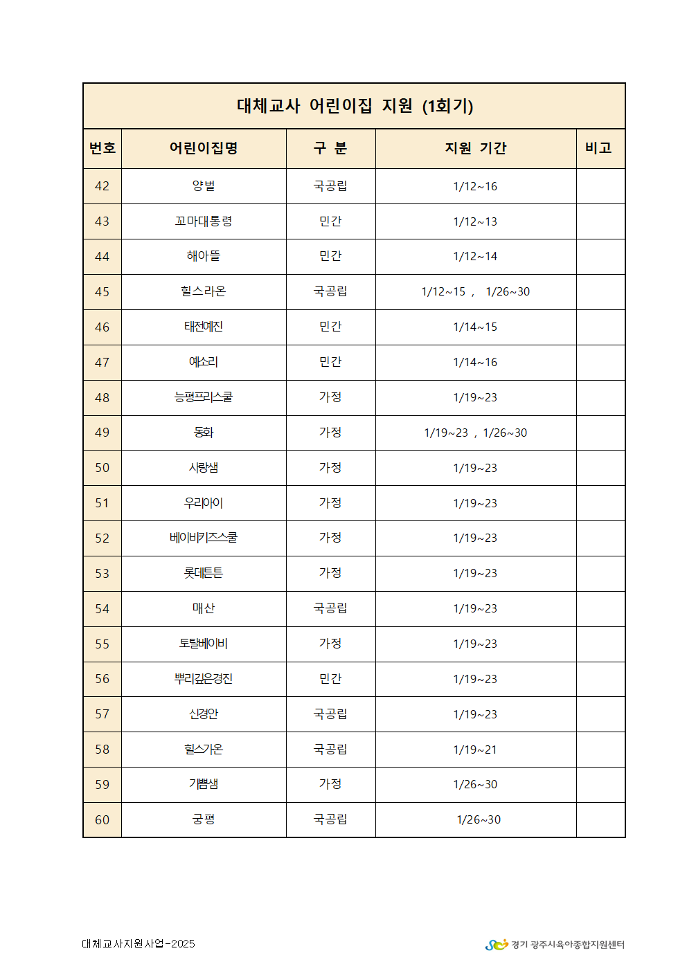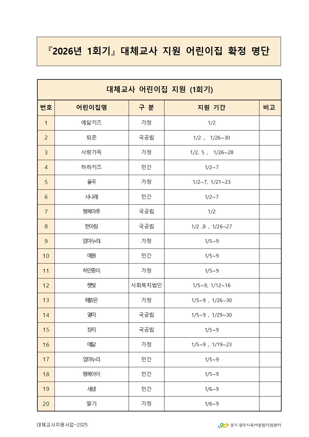 2026년 1회기 교육부 대체교사 지원 어린이집 확정 명단.hwp