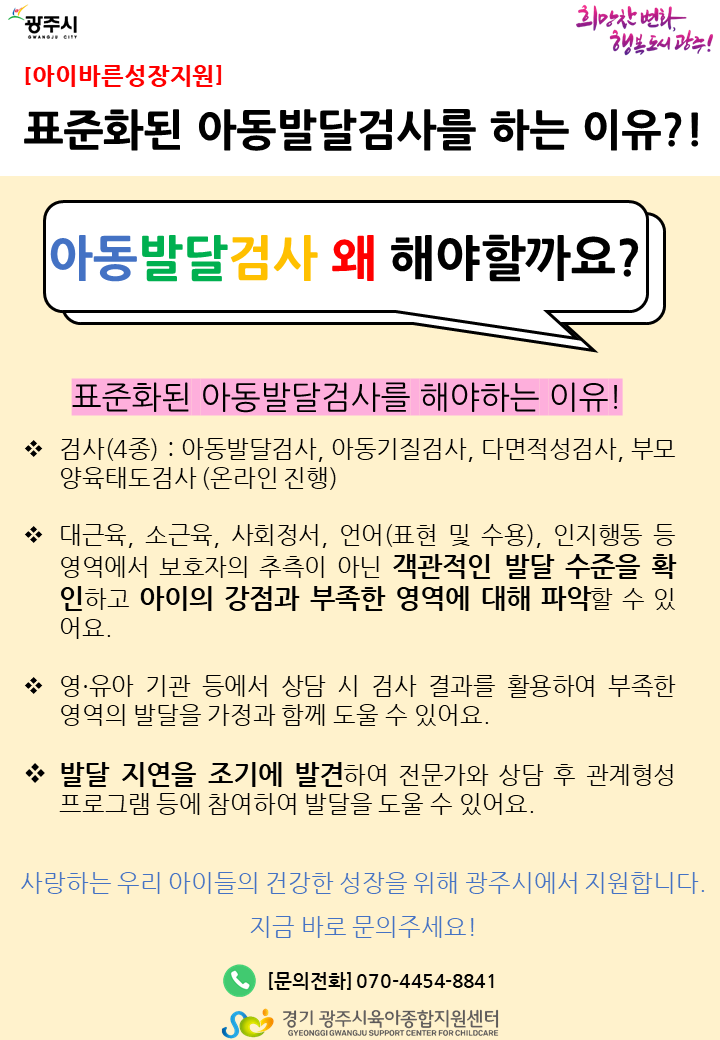 ▶ 발달검사 신청 >> 코칭 일정 신청 >> 신청서 제출 (gjchildcare20160427@gmail.com)
