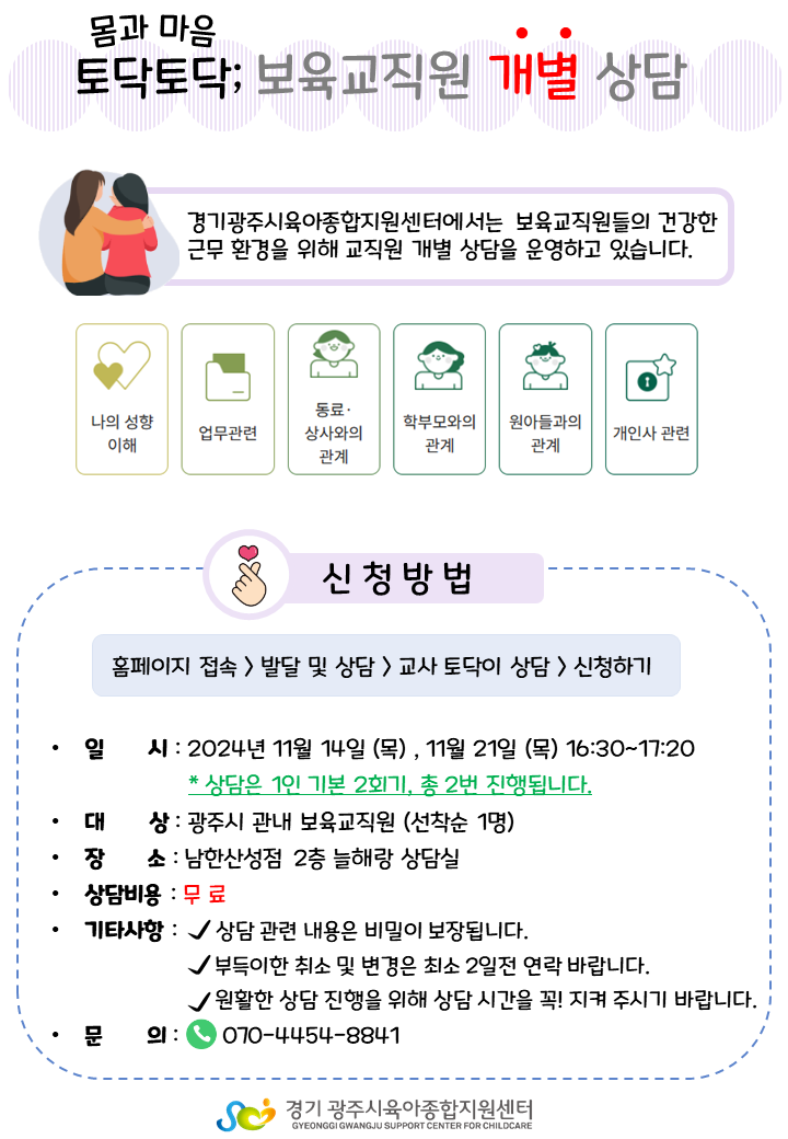 교직원 개별상담 (16시30분~17시20분) [1인 기본 2회기]