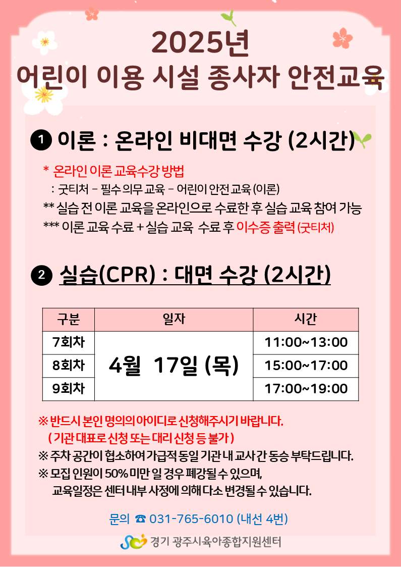 어린이 이용시설 종사자 안전 교육 (11시-1시) / (구) 응급처치 및 심폐소생술 교육