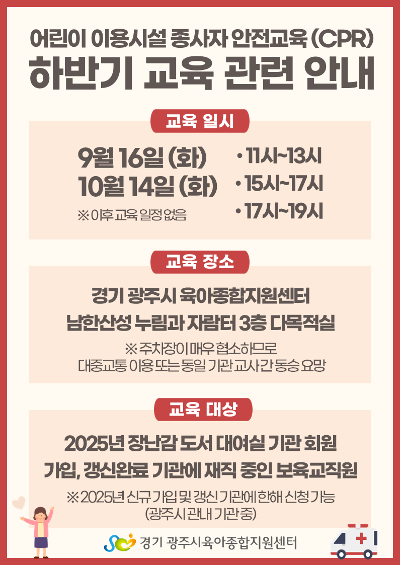 모든 교직원 교육은 2025년 장난감도서대여실 '기관 회원' 가입 및 갱신 완료한 기관에 재직 중인 보육교직원에게 제공됩니다.