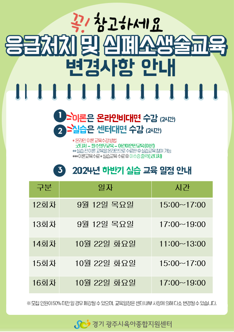 오포동민의날 행사 및 대관 일정 변경 요청으로 인해서 10월 10일 교육일정이 10월 22일로 연기되었습니다~