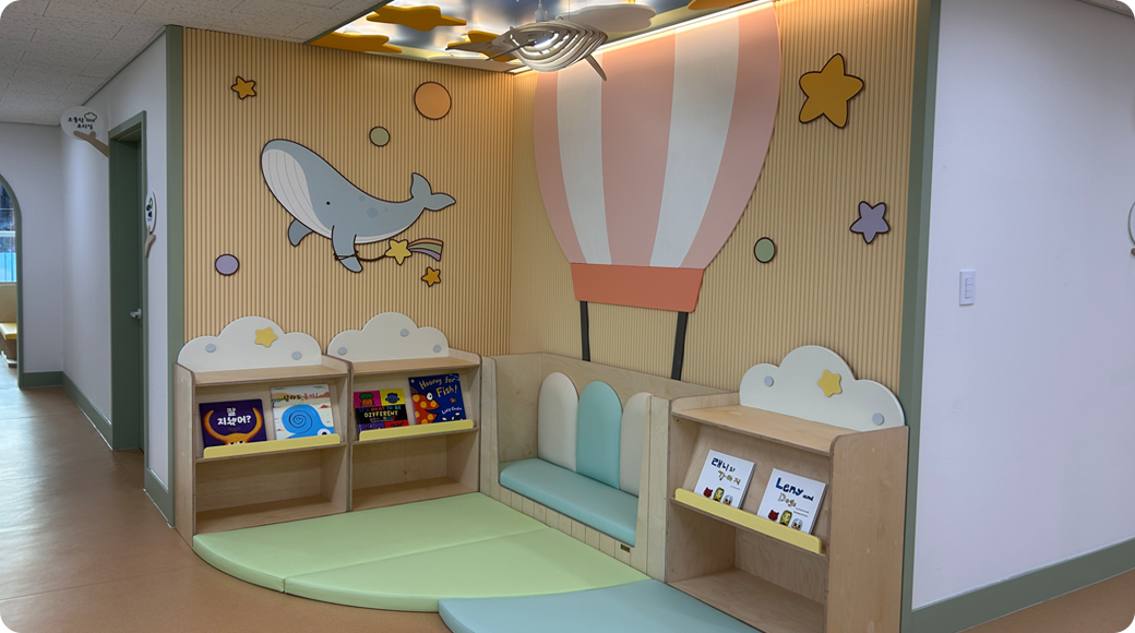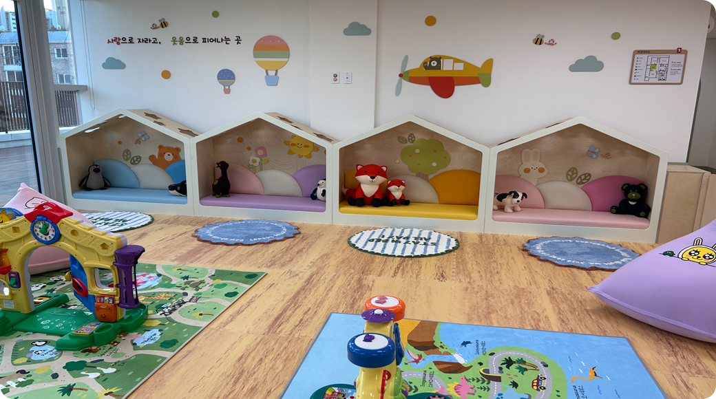 아장아장 놀이터는 영아가 발달 단계에 맞는 다양한 놀이를 통해 즐겁고 안전하게 성장할 수 있도록 구성된 공간입니다.